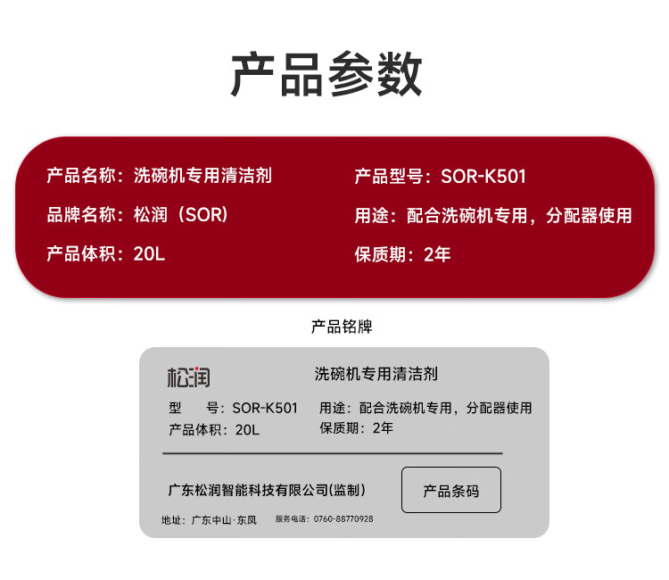 商品名称:【精选】松润 SOR-K5001 洗碗机配套洗涤剂+催干剂一套 白色 单位:桶