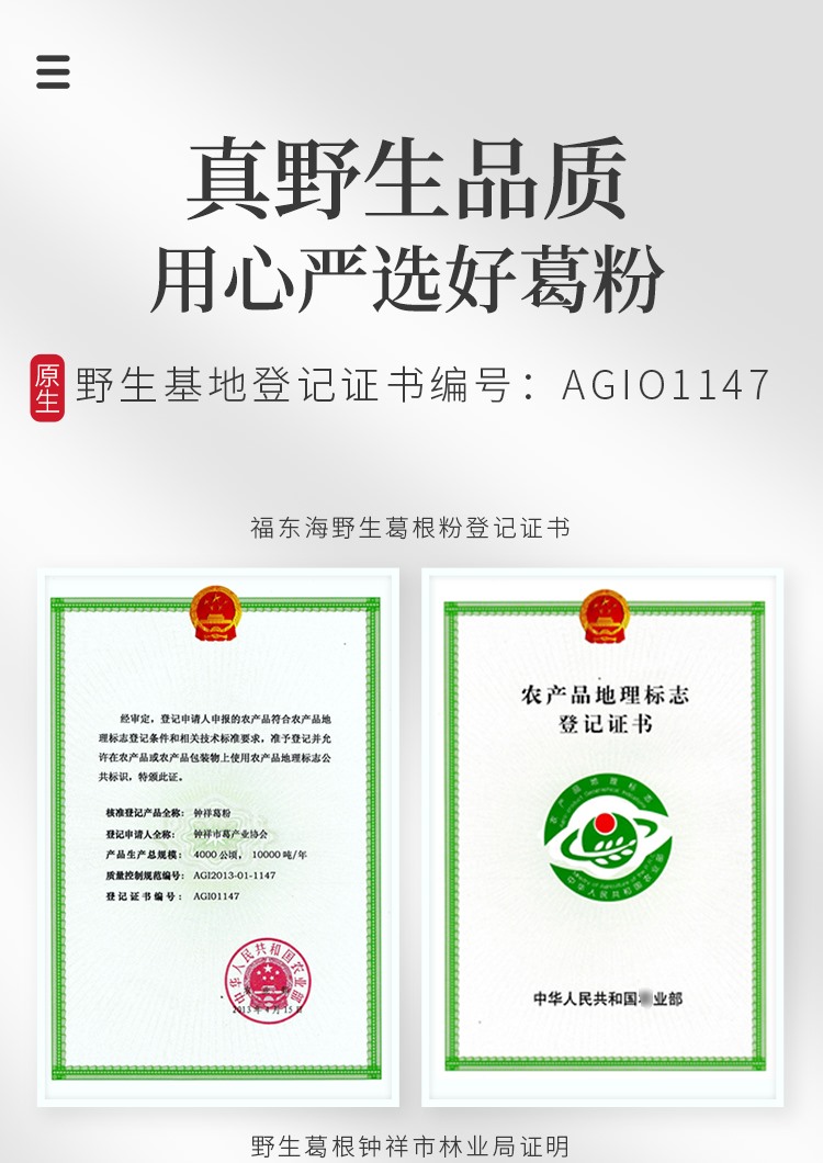 商品名称:【精选】福东海(GBHX) 野生葛根粉 500g 单位:盒