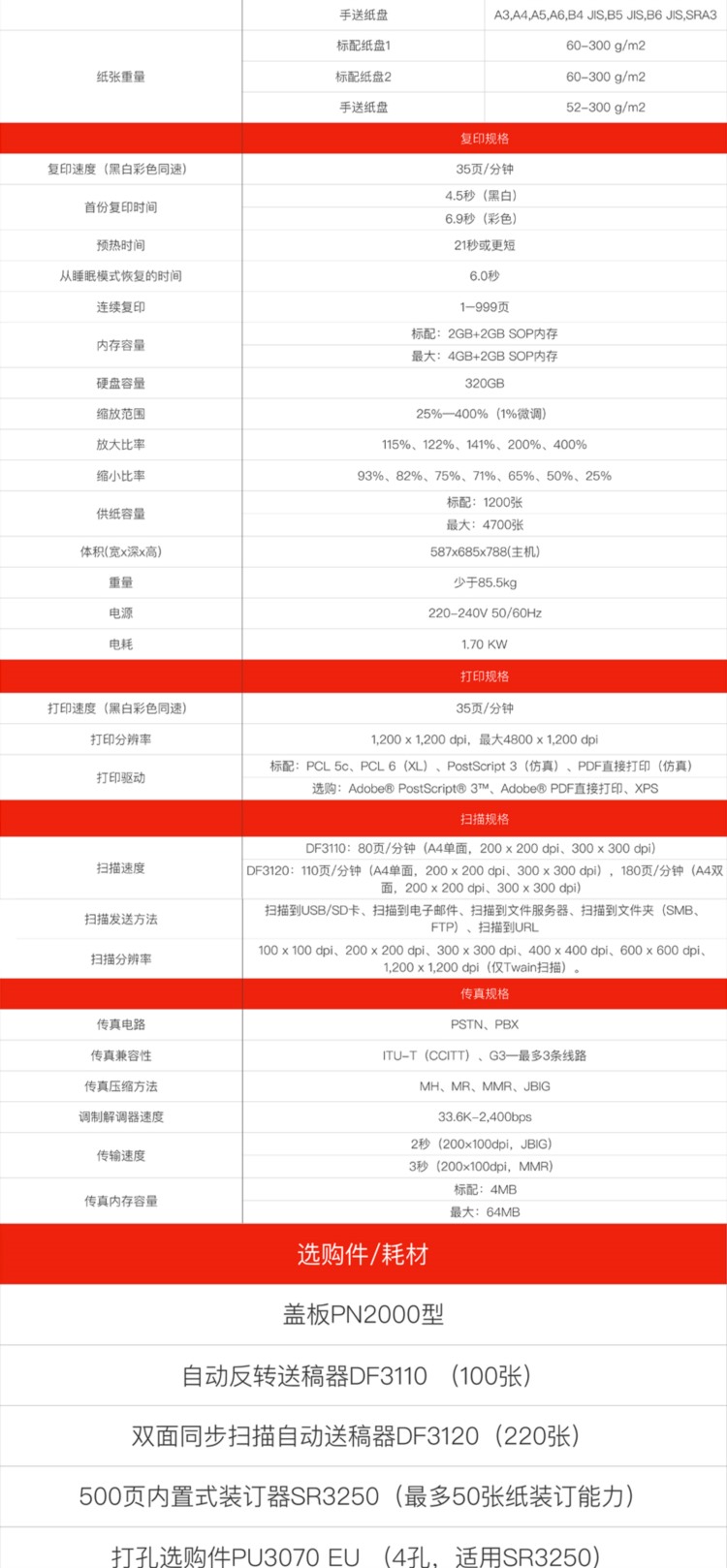 商品名称:【精选】理光 IM C3500 A3彩色商用数码复合机 (主机+双面输稿器+双纸盒) (单位:台)