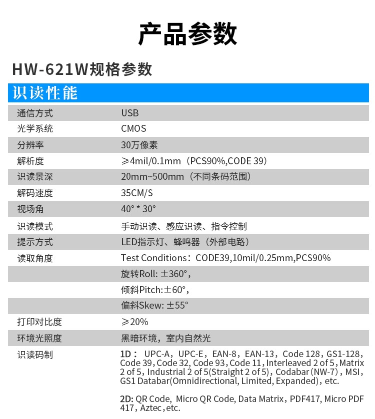 商品名称:【精选】汉王 HW-621W 二维无线 影像式扫码枪 自带储存条码扫描器 带充电底座 扫码器 (计价单位:台) 灰色