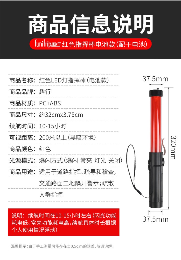 商品名称:【精选】趣行 交通安全指挥棒全红色32cm带鸣笛(配3节5号电池)LED灯消防棒 荧光警示棒 (计价单位:个)