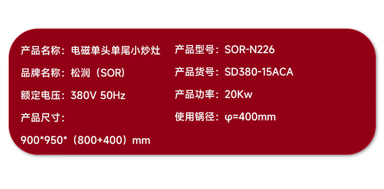 商品名称:【精选】松润 SOR-N221 900*950*1200单头单尾小炒炉