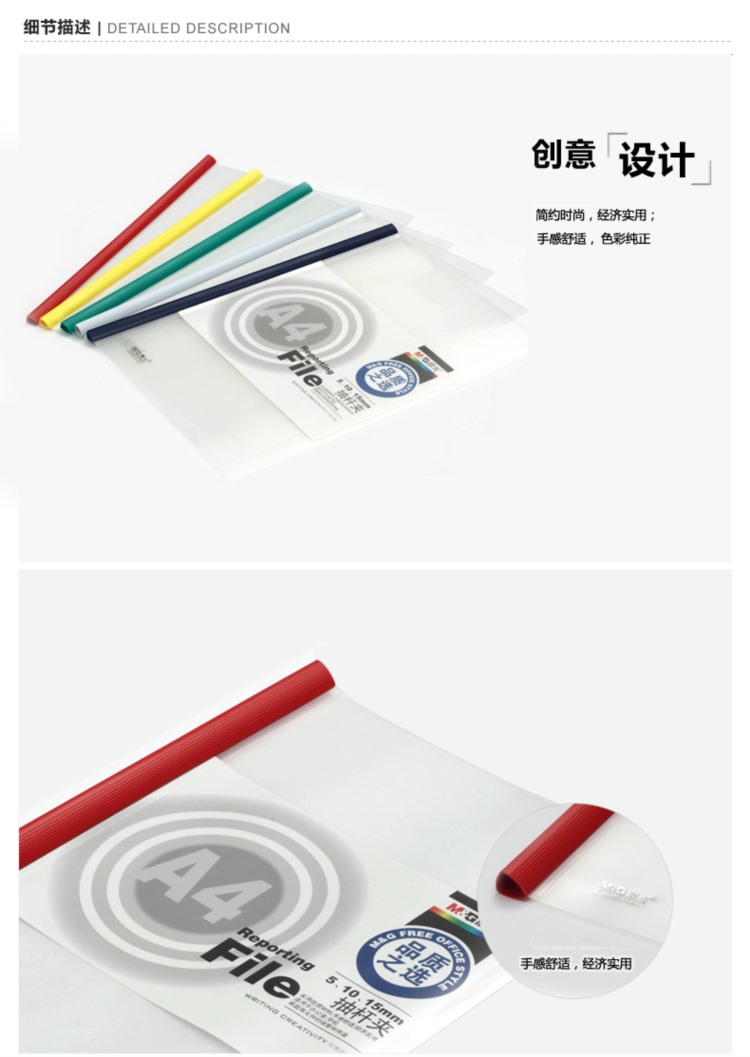 商品名称:【精选】晨光 M&G 抽杆式报告夹 ADM94521 15mm (红色、蓝色、绿色、黄色、白色颜色随机) 10个/包