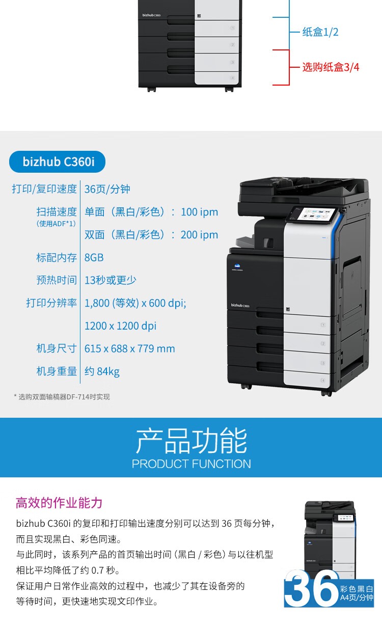 商品名称:【精选】柯尼卡美能达 bizhub C360i A3彩色多功能复合机(含双面自动输稿器+双纸盒+工作台)(单位:台)