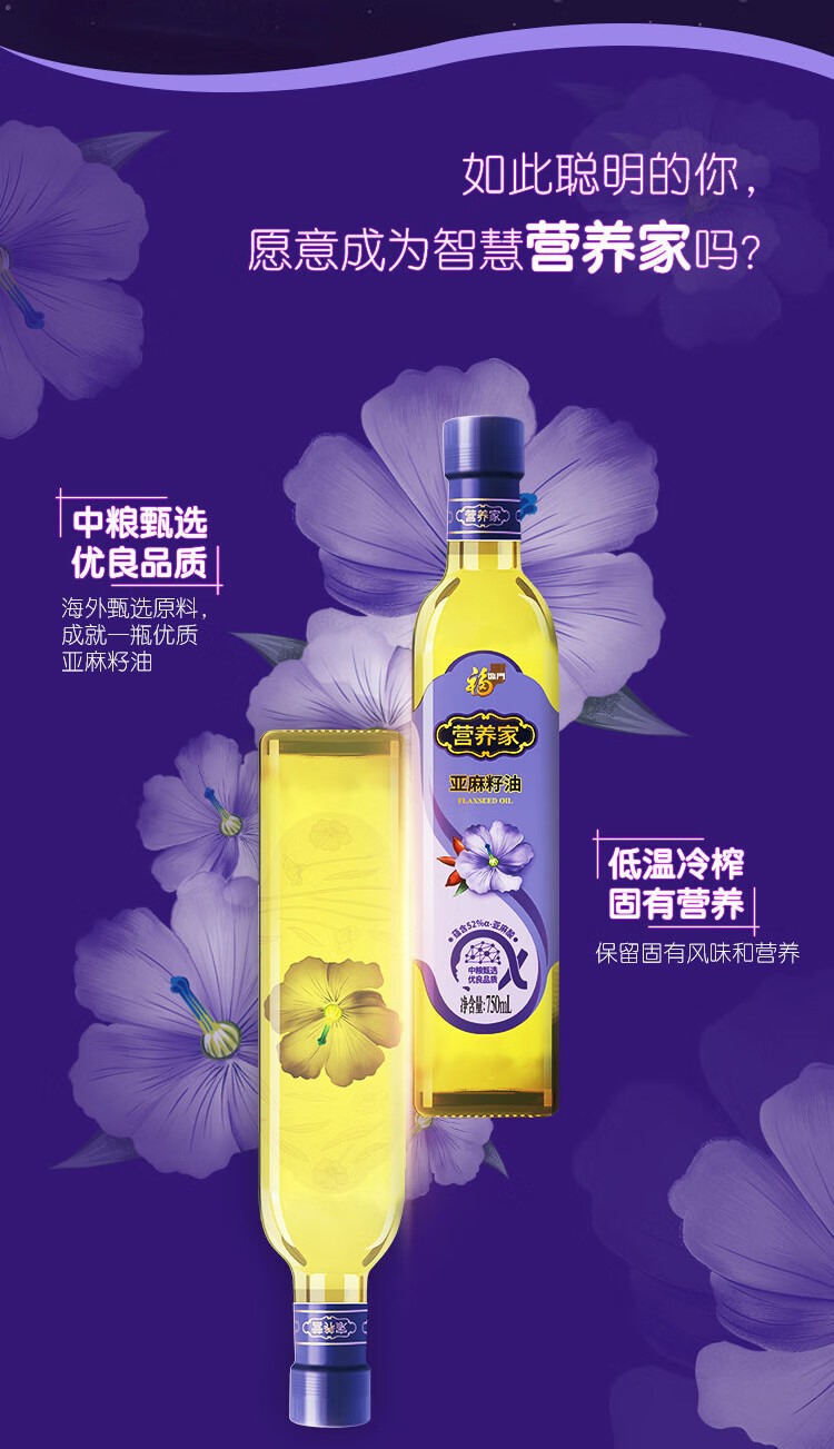 商品名称:【精选】福临门(GBHX)中粮营养家亚麻籽油750ml*2