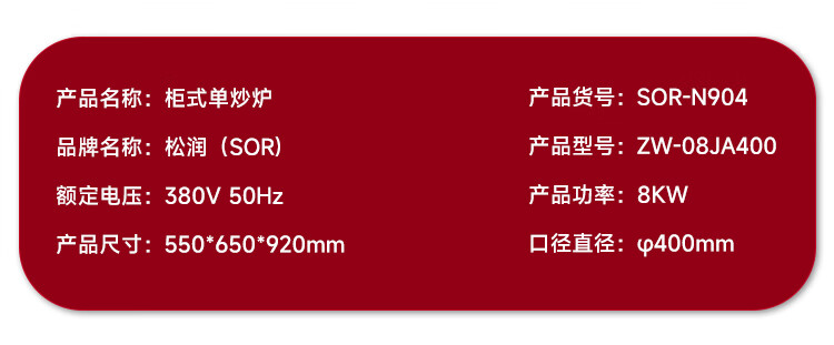 商品名称:【精选】松润 SOR-N903 550*650*800+120 柜式单炒炉银色(单位:台)