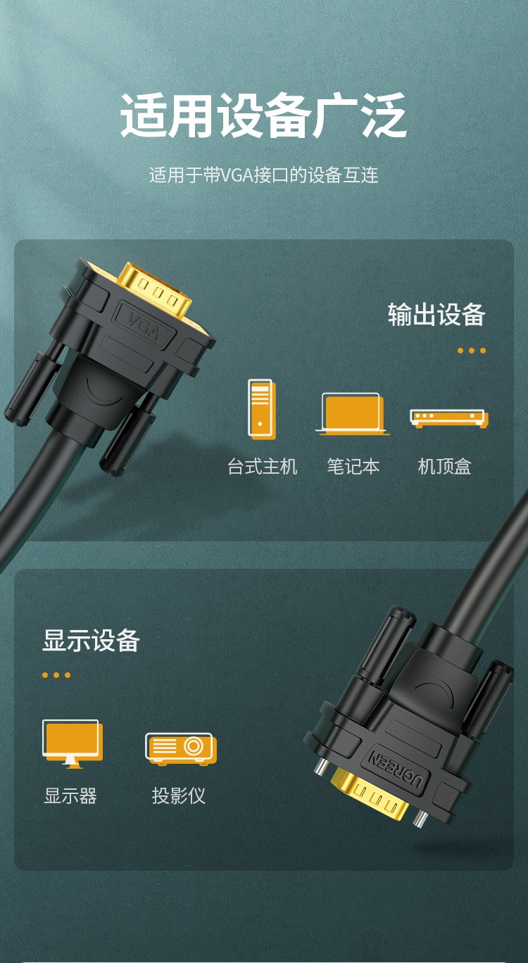 商品名称:【精选】绿联 UGREEN VGA线 3+6 工程线 11636 30米 (黑色)