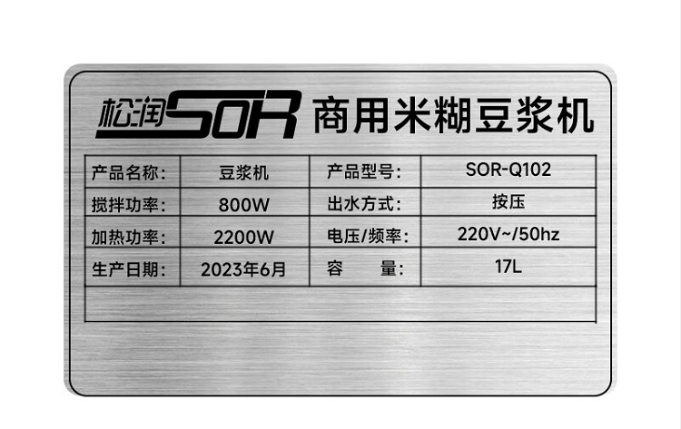 商品名称:【精选】松润SOR-Q104 380*1070 30L豆浆机银色(单位:台)