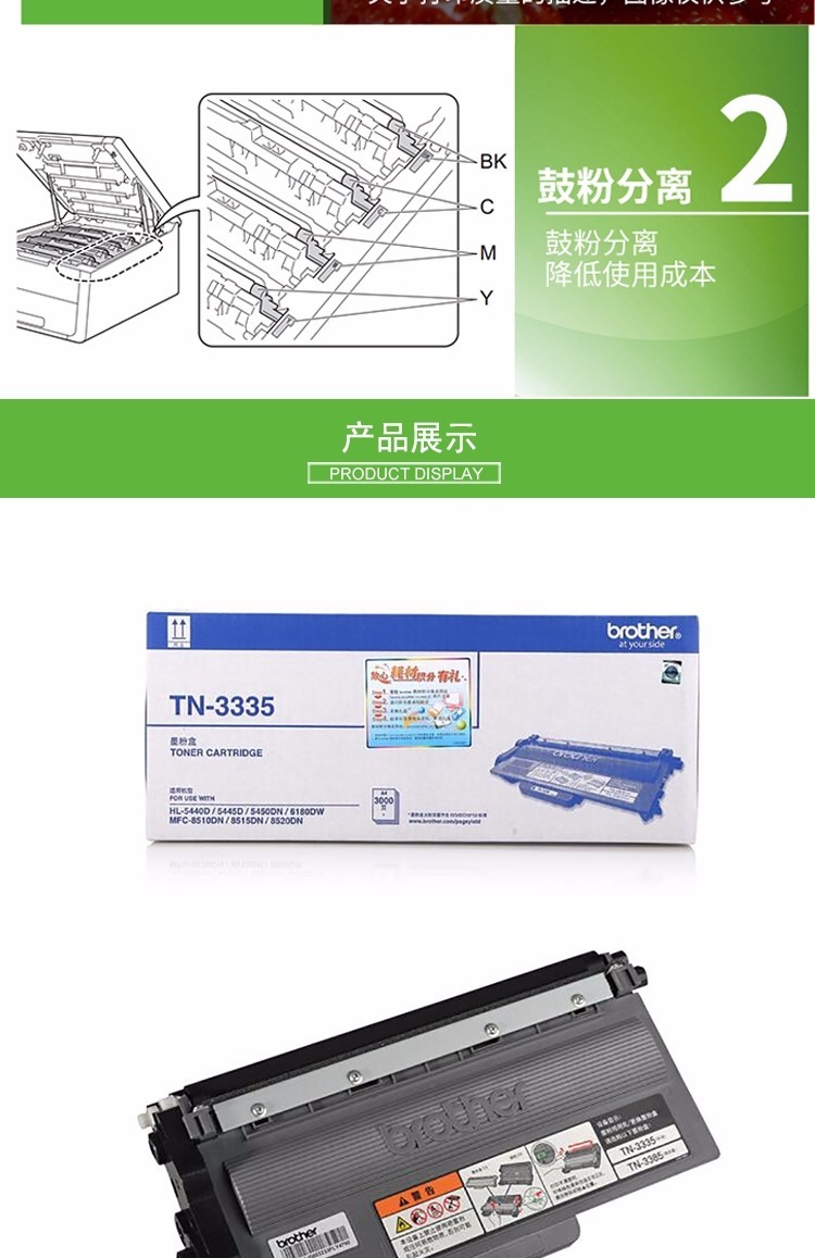 商品名称:【精选】兄弟(BROTHER) TN-3335 3000页 墨粉 (计价单位:支) 适用机型:HL-5440D 5445D 黑色