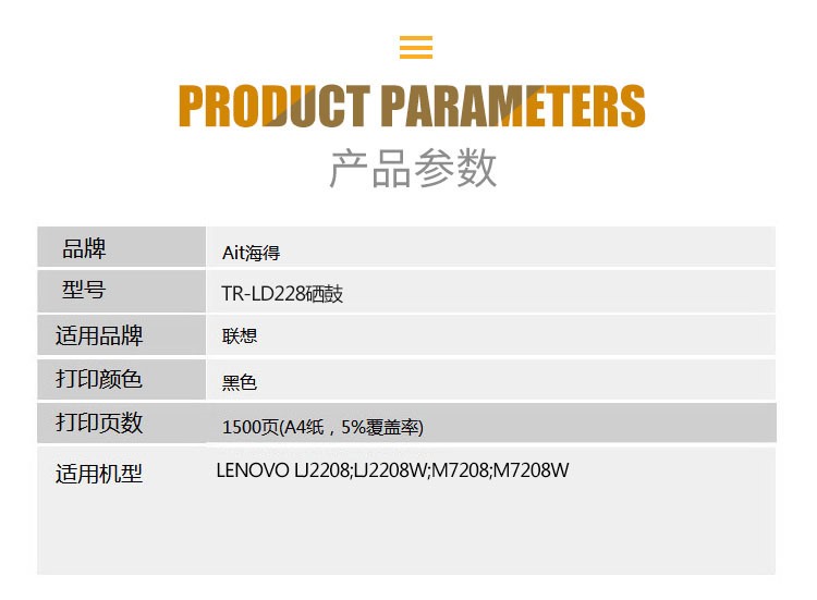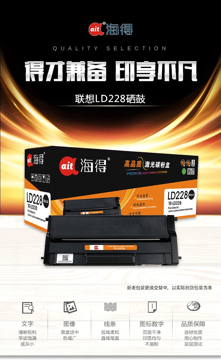 商品名称:【精选】海得 硒鼓 AIT-LD228 (黑色 )专业版 适用联想LENOVO LJ2208 M7208W 打印机