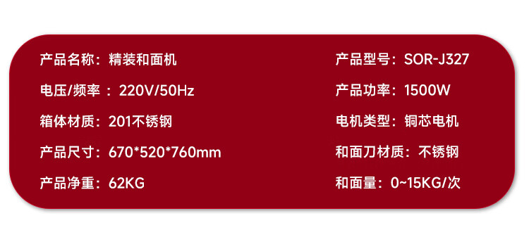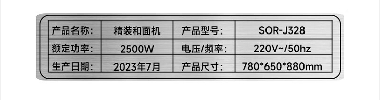 商品名称:【精选】松润SOR-J328 780*620*860 精装和面机(25kg)银色(单位:台)