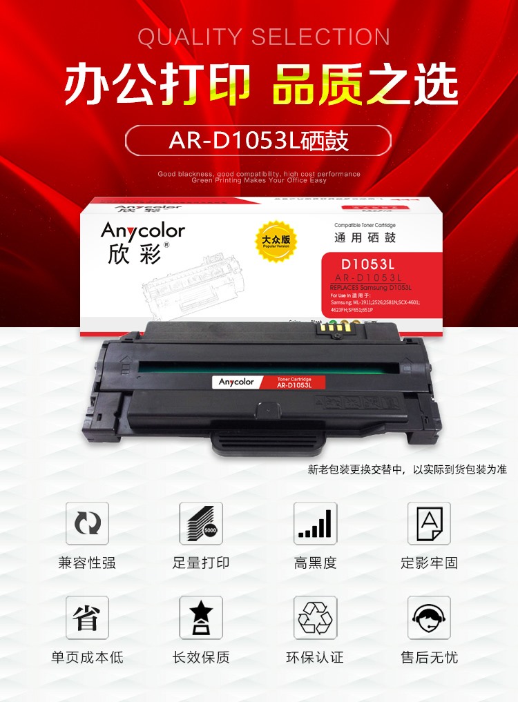 商品名称:【精选】欣彩(Anycolor) MLT-D1053L硒鼓 大众版 AR-D1053L 适用三星ML-1911 ML-2526 ML-2581N SCX-4601