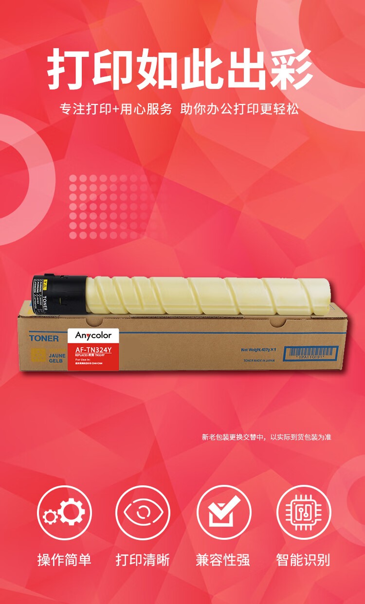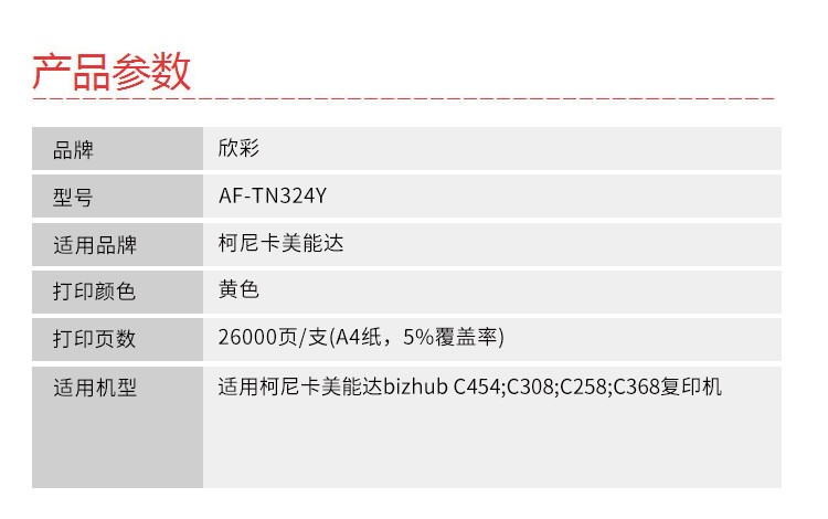 商品名称:【精选】欣彩(GBOSD)TN324粉盒 AF-TN324Y黄色 适用柯尼卡美能达 bizhub C454 C308 C258 C368 复印机耗材