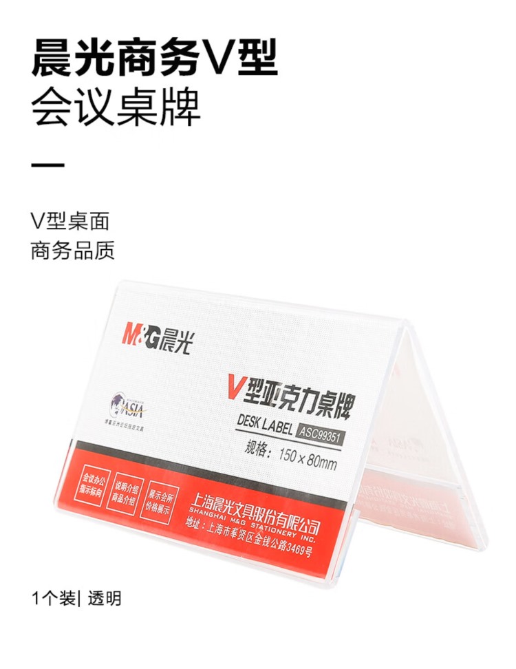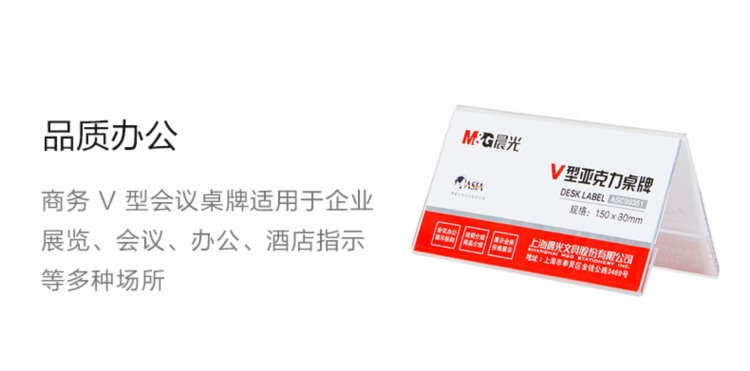 商品名称:【精选】晨光 M&G 商务V型会议桌牌 ASC99351 150*80mm