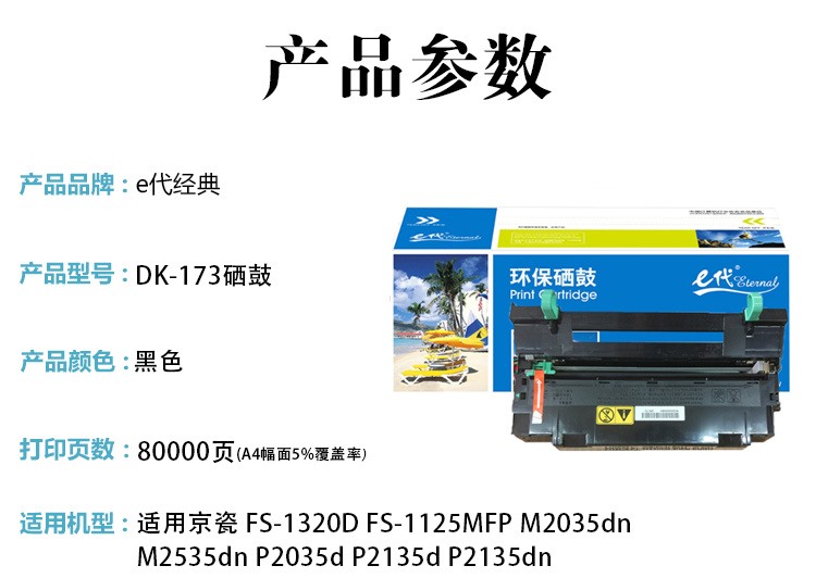 商品名称:【精选】e代经典 (GBHX)京瓷DK-173硒鼓 适用于P2135dn FS-1135打印机硒鼓