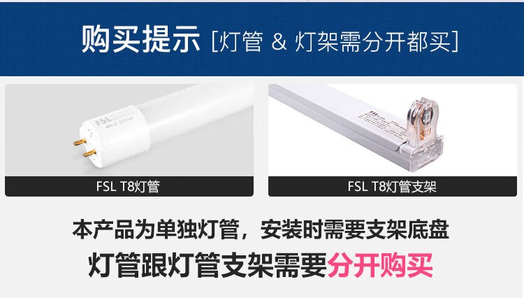 商品名称:【精选】佛山照明 LED单支灯管灯架 T8 长1.2m