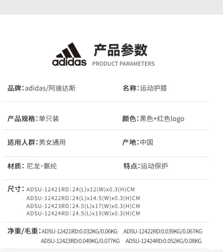 商品名称:【精选】阿迪达斯 ADSU-12423RD L 尼龙 护膝 (计价单位:只)