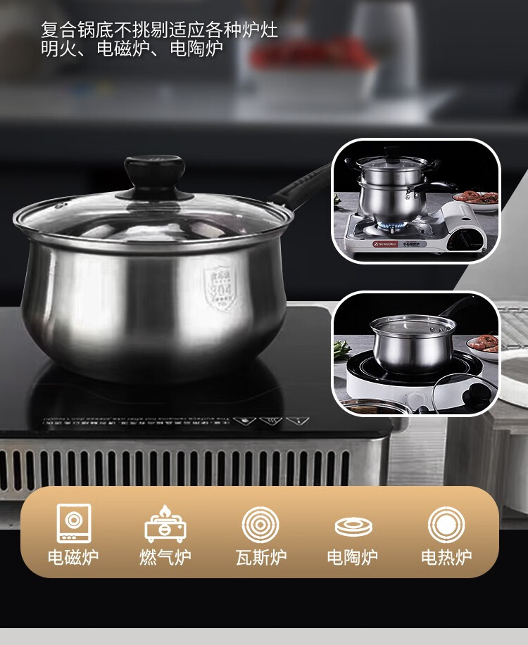 【精选】栢士德(BYSTON) BST-102D 18cm 304不锈钢 奶锅 (计价单位:个)