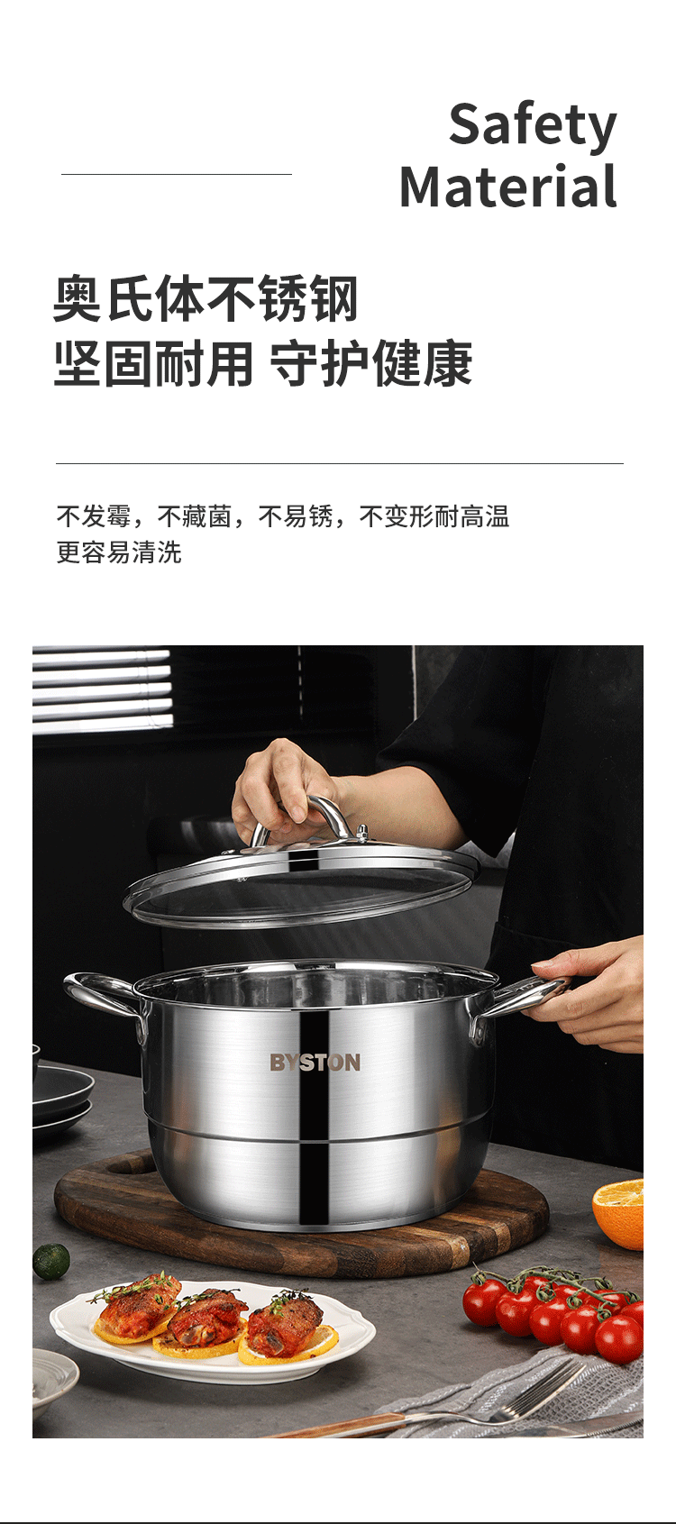 【精选】栢士德BYSTON 菲卡不锈钢蒸煮锅 BST-138 奥氏体型不锈钢 24CM汤锅+蒸片(单位:套)