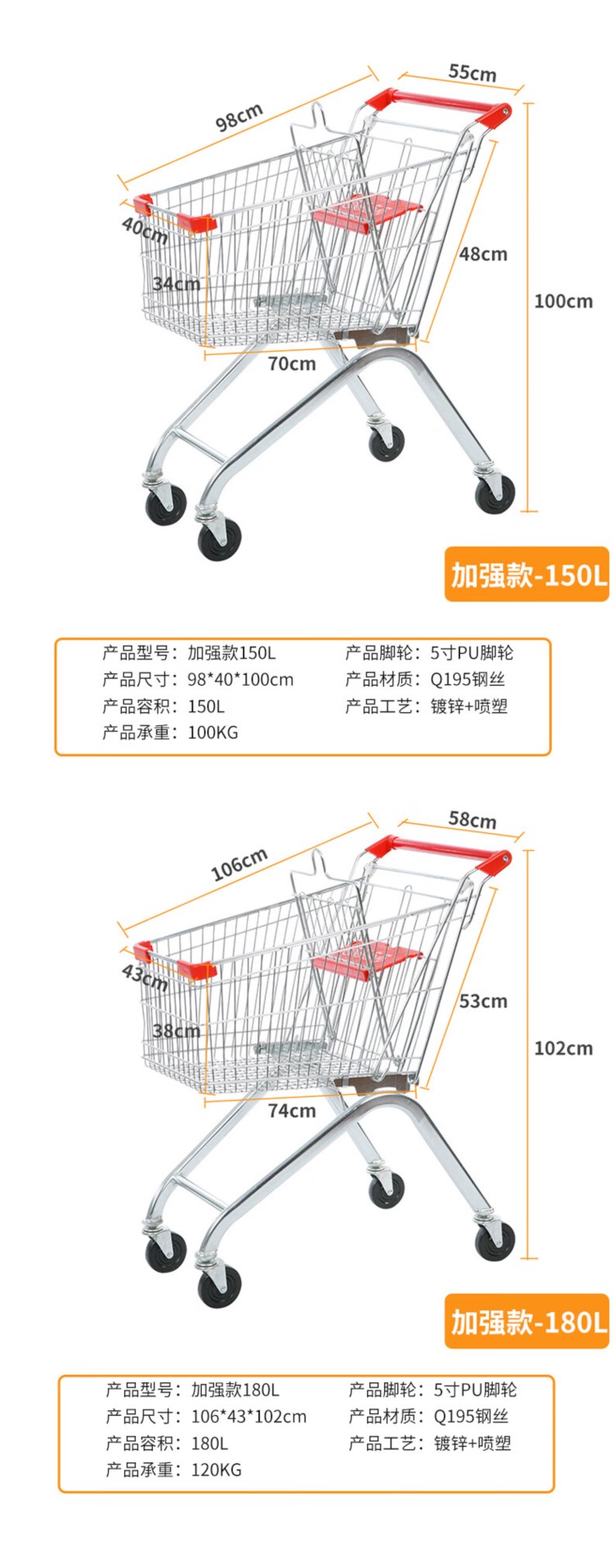 商品名称:【精选】澳美佳 超市购物车手推车 150L (计价单位:辆)