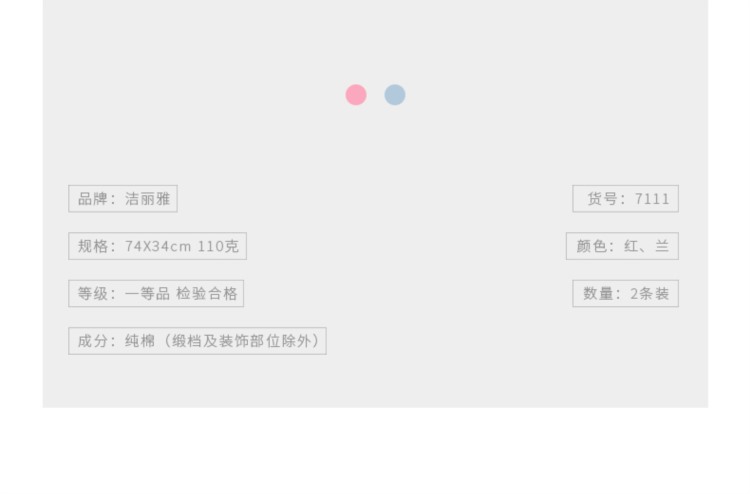 商品名称:【精选】洁丽雅 7111 74*34cm 2条装 毛巾 (计价单位:组) 简爱纯棉舒适加厚毛巾