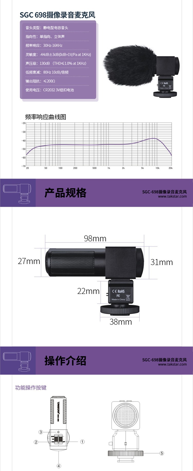 商品名称:【精选】得胜/TAKSTAR SGC-698 专业单反相机麦克风 (单位:个)