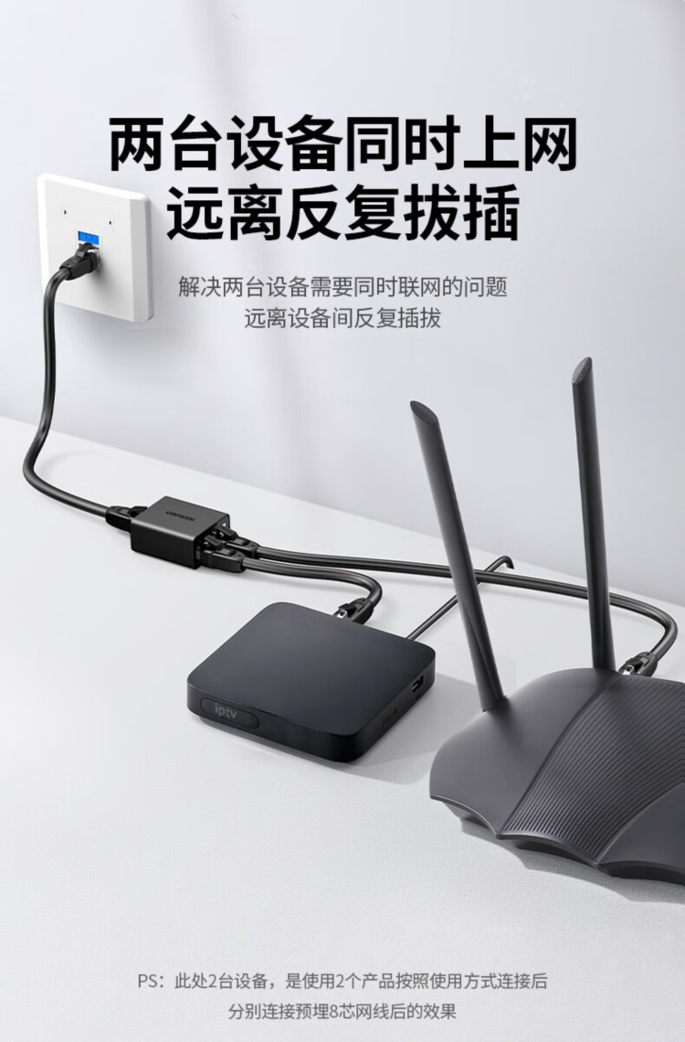 商品名称:【精选】绿联 UGREEN 网线分线器 50923 一分二 RJ45 直三通头 2个装