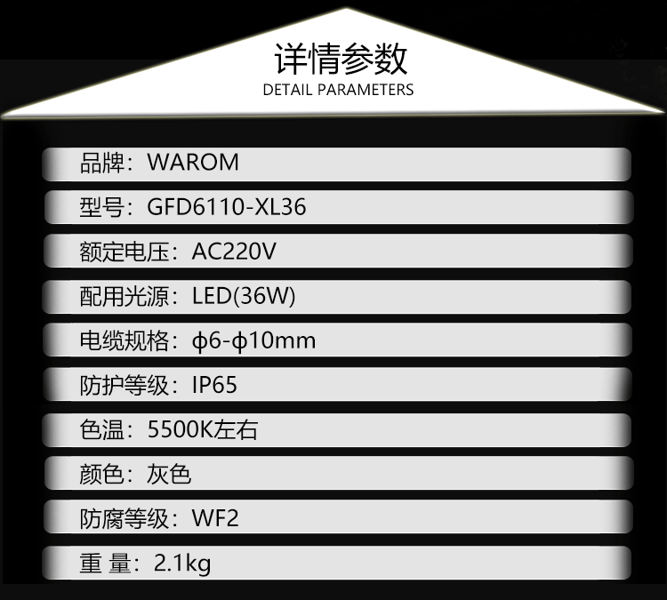 商品名称:【精选】华荣 GFD6110-XL36 LED 固定式LED灯具 配用光源: LED(36W) (计价单位:套) 灰色