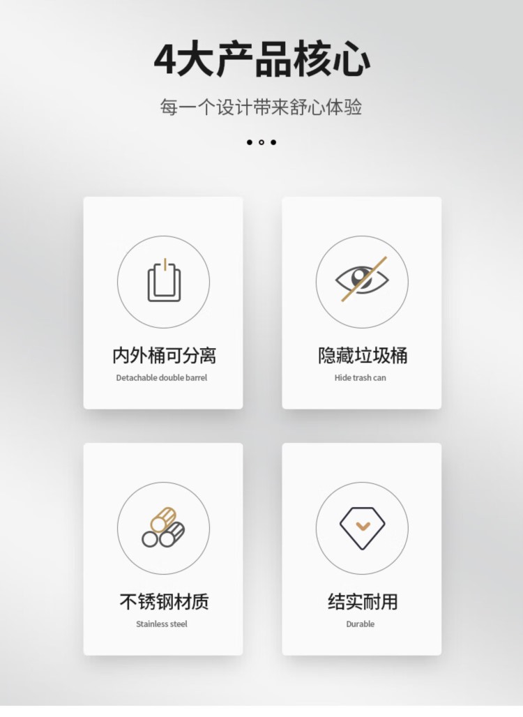 【精选】科力邦不锈钢垃圾桶 KB1020 不锈钢 上开口 钛金黑白根 290*290*630mm 钛金黑白根 290*290*630mm