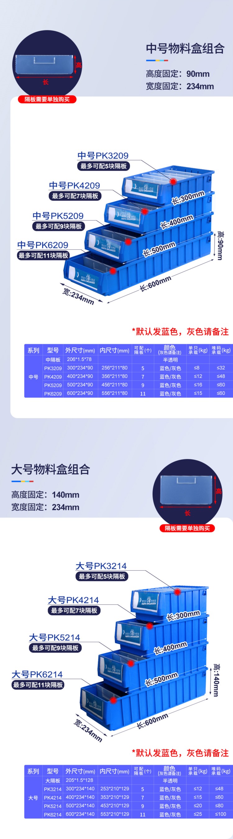 商品名称:【精选】力王 PK3214 物料盒五金工具箱仓库螺丝五金配件货架收纳盒 零件盒 300*234*140 (计价单位:个) 蓝色