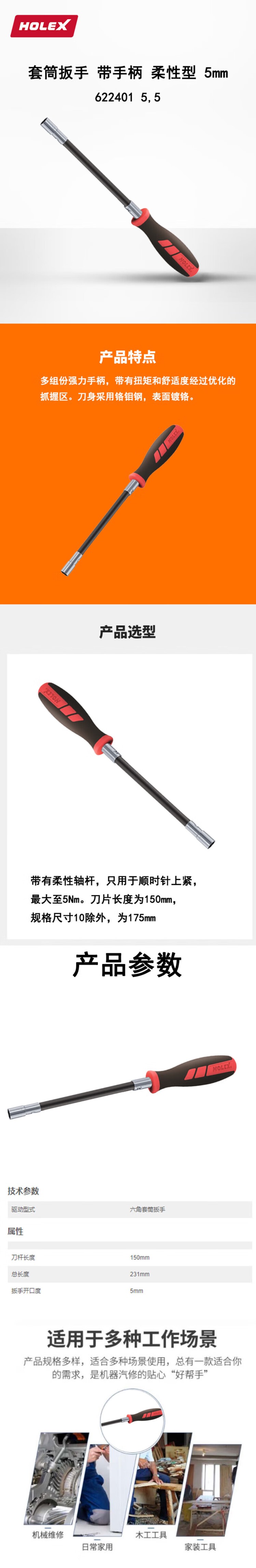 商品名称:【精选】霍夫曼 HOLEX 622401 5,5 套筒扳手 带手柄 柔性型 5mm (计价单位:个) 配色