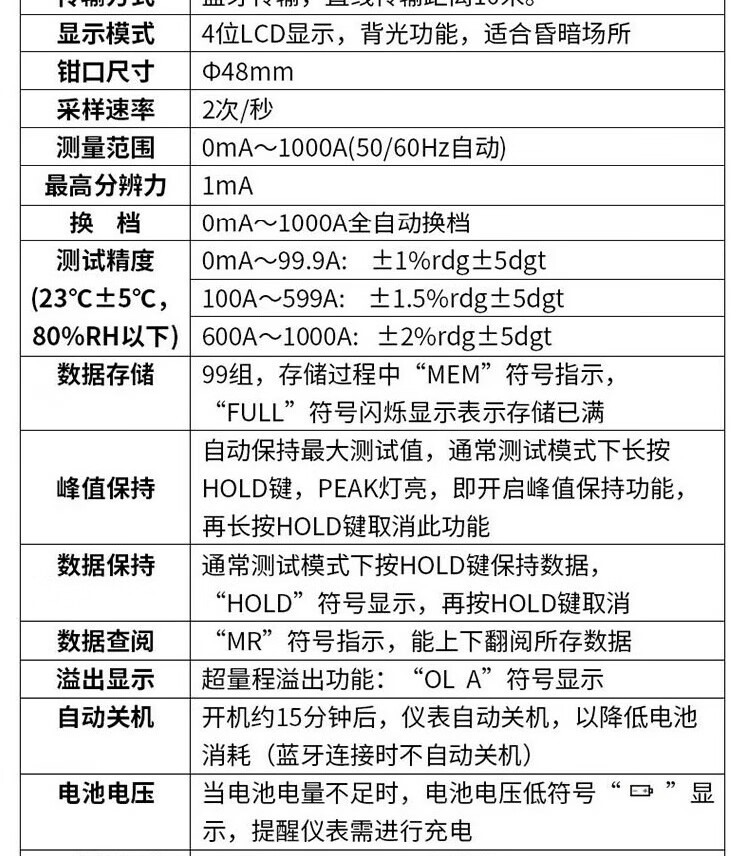 商品名称:【精选】胜利仪器 钳形电流表 VICTOR Y1121D 量程:0mA~1000A 尺寸:255mm*84mm*39mm 单位:台