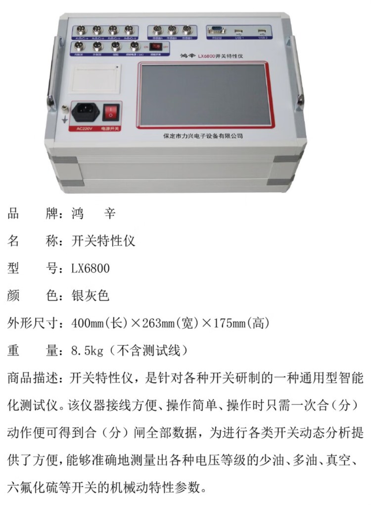 商品名称:【精选】鸿辛 开关特性仪 LX6800 内部电源 DC10~265V/20A (单位:套)