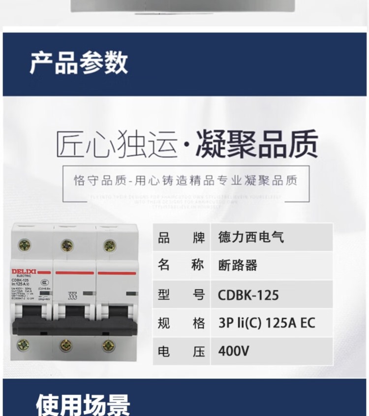 商品名称:【精选】德力西电气 断路器 CDBK-125 3P li(C) 125A EC