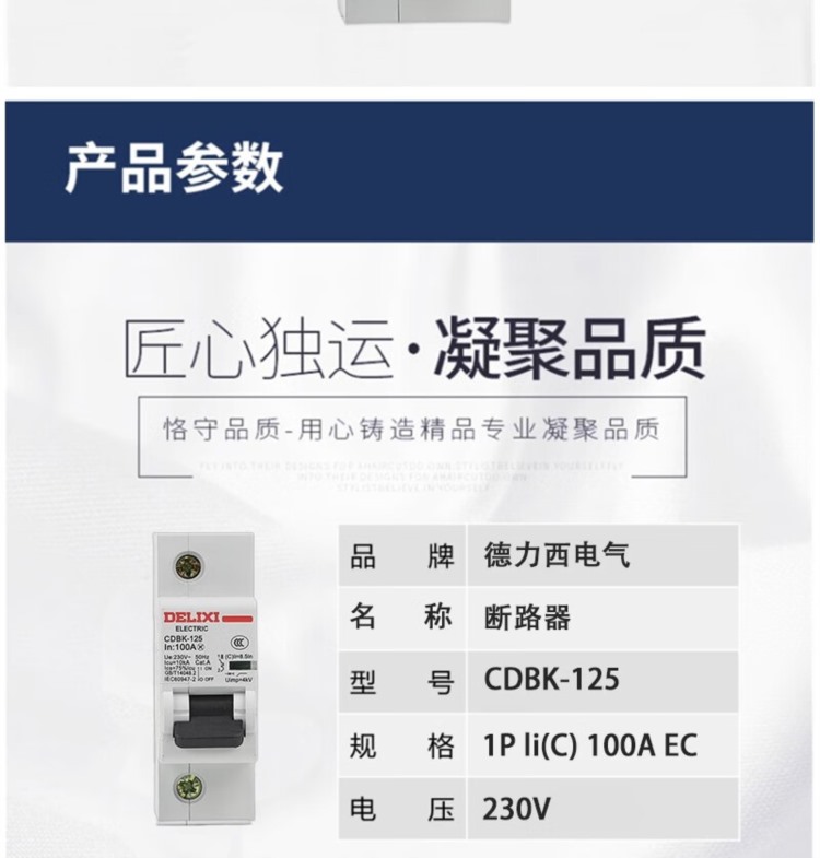 商品名称:【精选】德力西电气 CDBK-125 1P li(C) 100A EC 断路器 (计价单位:个)