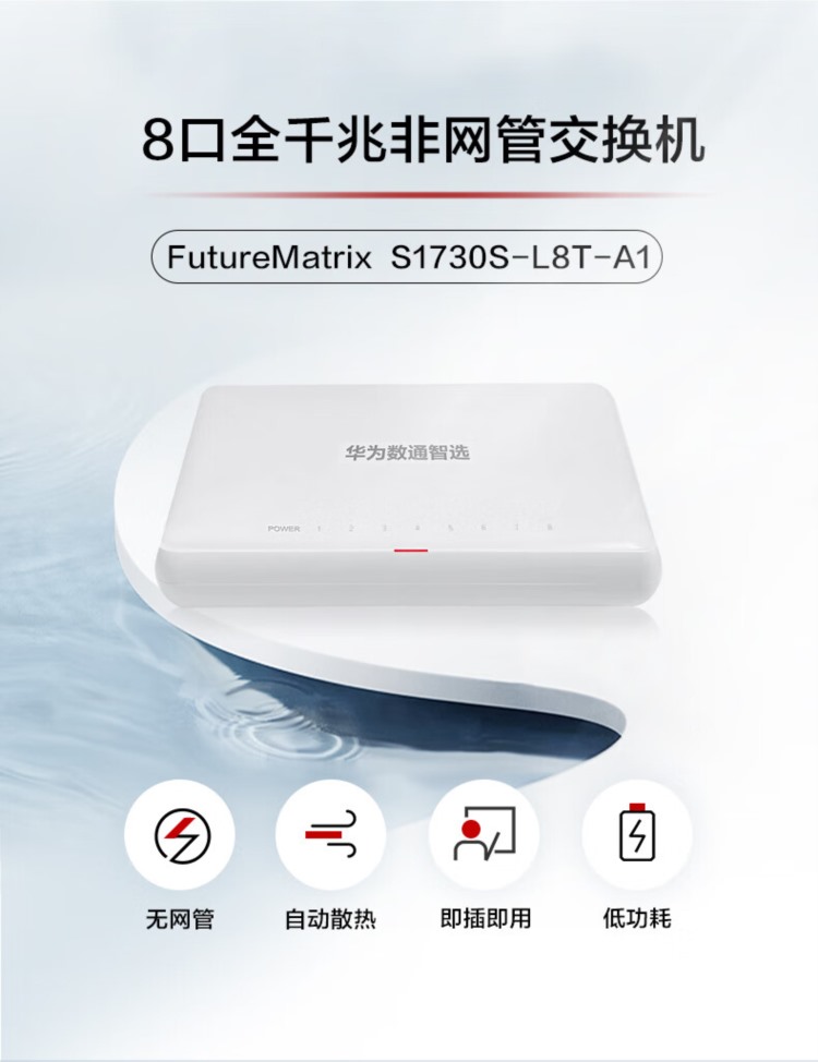 商品名称:【精选】华为(HUAWEI) 华为数通智选S1730S-L8T-A1 8口千兆以太网端口(单位:台) 交换机 (计价单位:台) 白色
