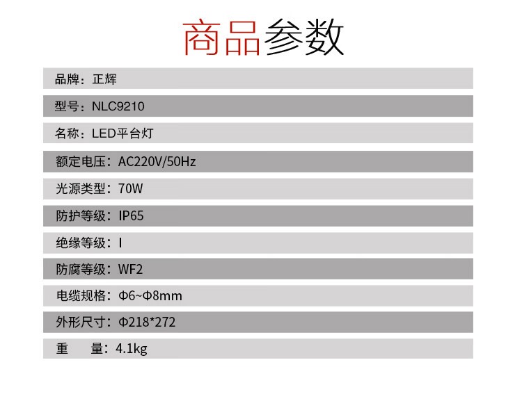 商品名称:【精选】正辉 LED平台灯 NLC9210-70 70W (单位:个)