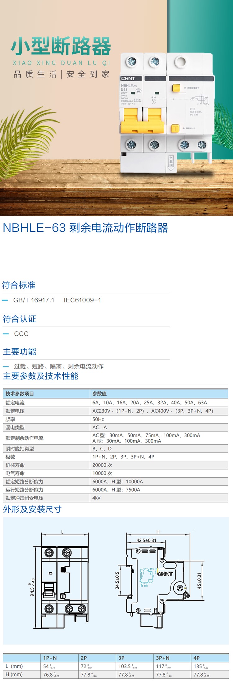 商品名称:【精选】正泰 NBHLE-63 2P D63 30mA 断路器 (计价单位:个) 微型断路器