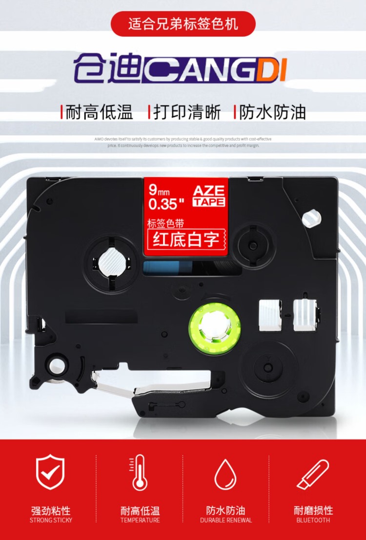 商品名称:【精选】仓迪CANGDI 标签机色带 AZE-451适用兄弟24㎜不干胶兄弟标签机色带 AZE-451 红底黑字24㎜