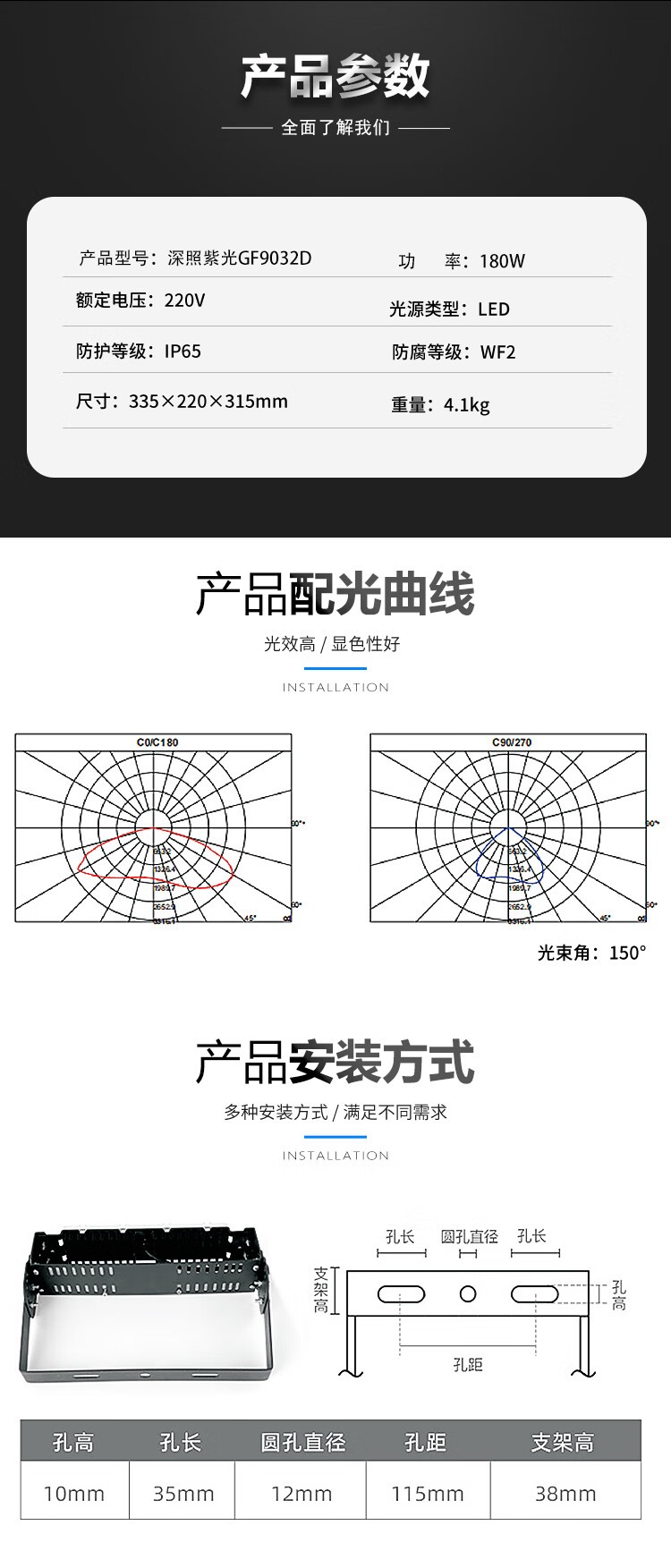 商品名称:【精选】深照紫光 GF9032D LED隧道灯 180W(NEW)