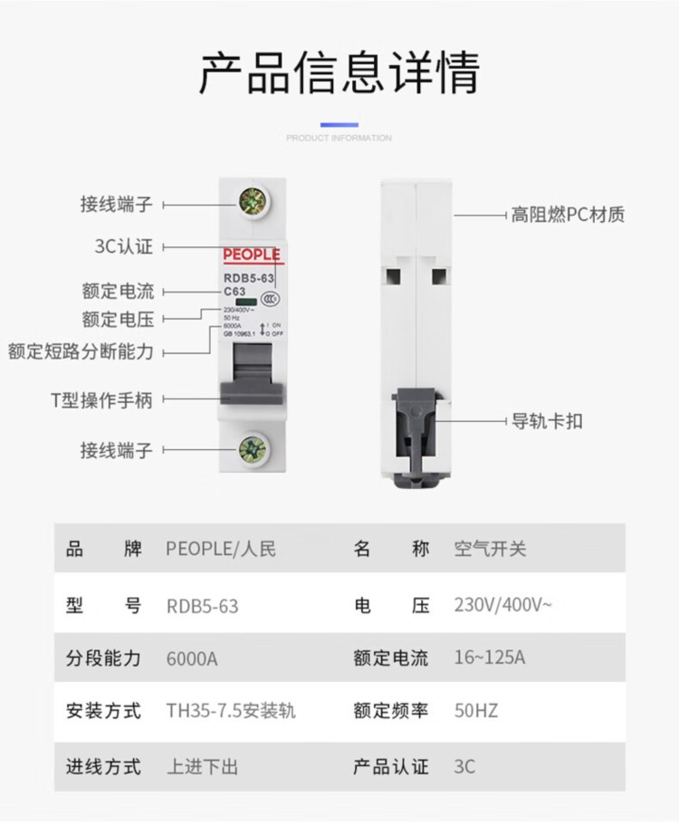 商品名称:【精选】人民电器 RDB5 空气开关 63A 2P C型 (计价单位:个)