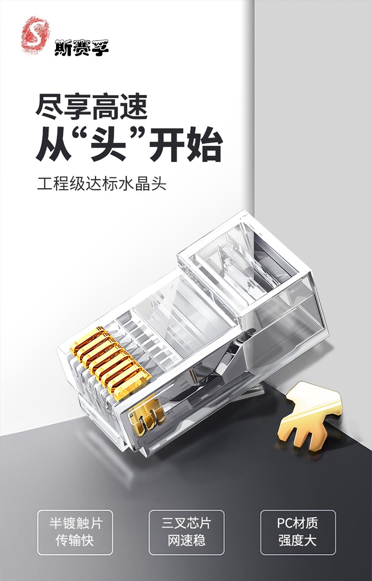 商品名称:【精选】斯赛孚 超五类水晶头 SF-5RJ45 100颗 非屏蔽8p8c纯铜水晶头 RJ45网线接头