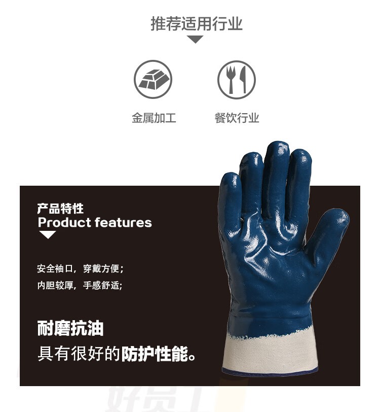 商品名称:【精选】好员工 DJ900 丁腈涂层耐油耐磨手套 均码 13针 10副/打 (计价单位:打) 藏青色