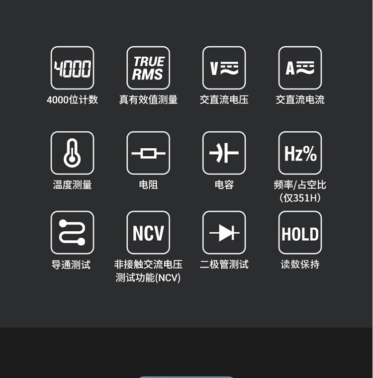 商品名称:【精选】华盛昌(CEM)NH350H数字钳形表 全自动数显交流电流表 高精度真有效值电流表 多用表万能表(单位:套)