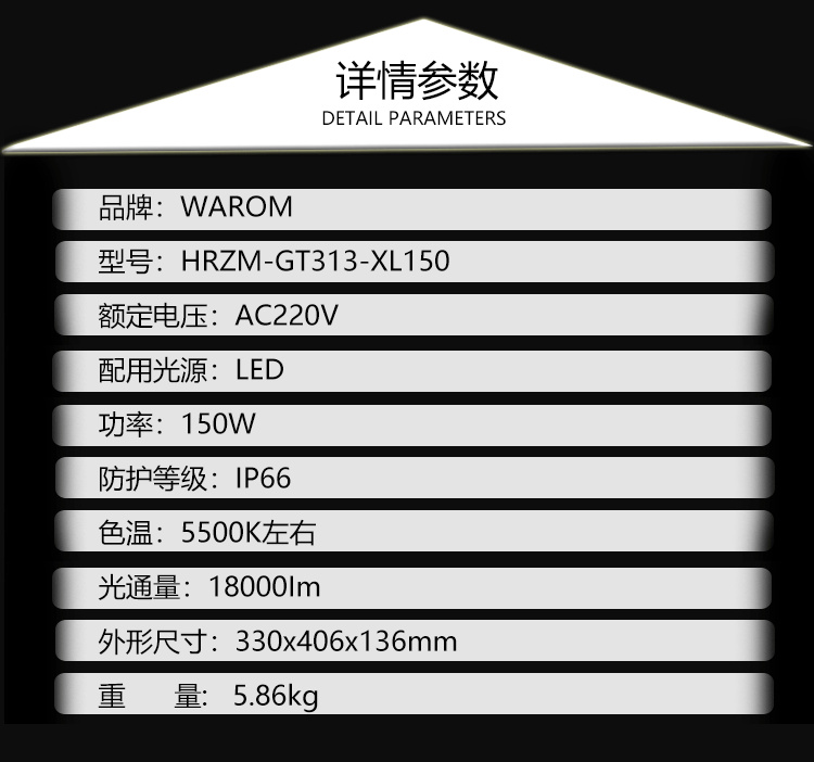 商品名称:【精选】华荣(WAROM) 投光灯具 HRZM-GT313-XL150