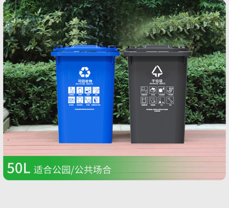 商品名称:【精选】科力邦 干湿分类垃圾桶 KB1040 50L 460*420*600mm 塑料 干垃圾 黑色