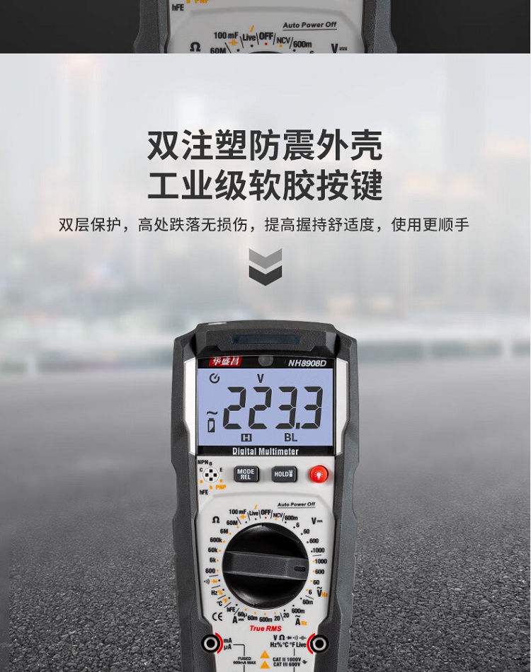 商品名称:【精选】华盛昌(CEM)NH8908D数字万用表高精度防烧电工表带背光数显式多用表带测温万能表真有效值电流表(单位:套)
