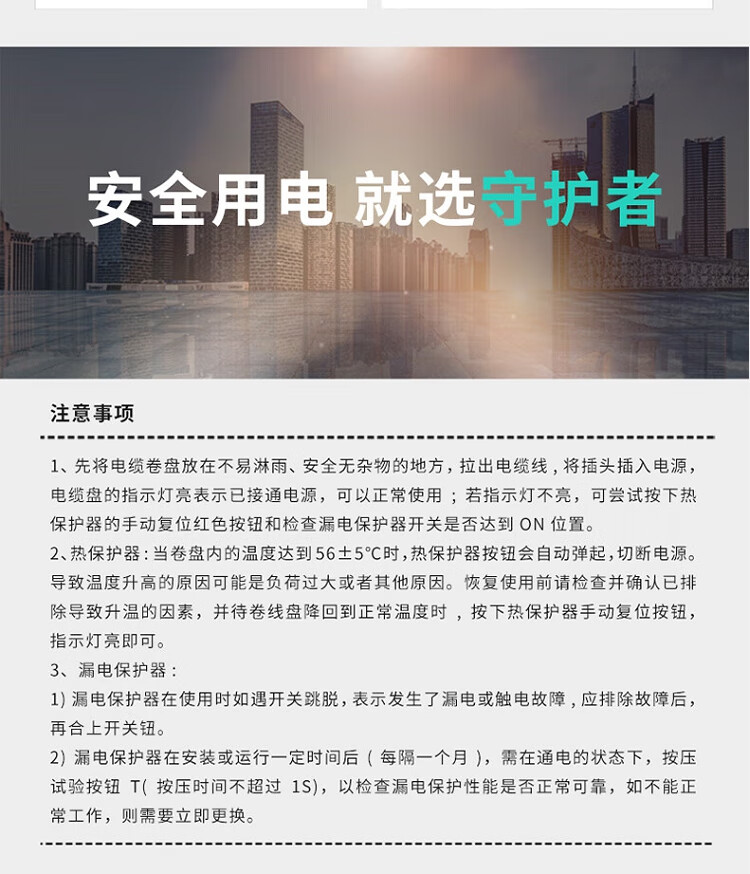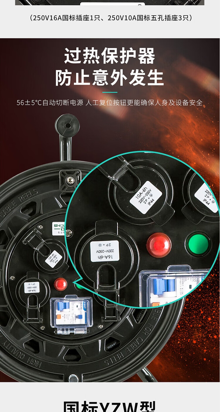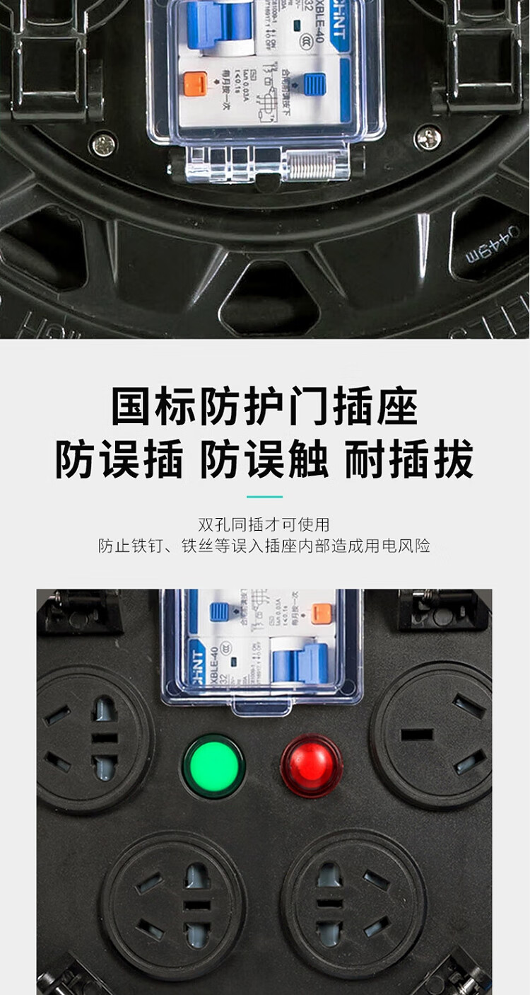 商品名称:【精选】守护者 电缆盘国标儿童安全门插座 YZW户外橡套 正泰漏电保护器 220V 快速接线盒 刹车止动装置 线3*2.5mm²/长30米