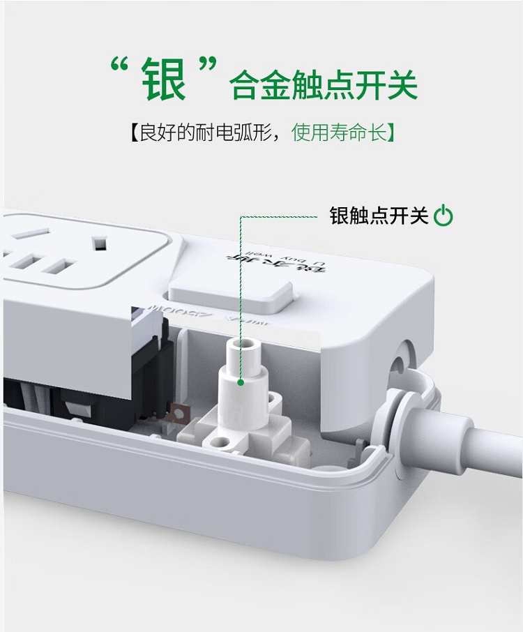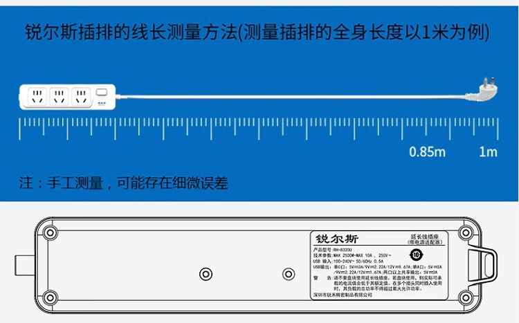 商品名称:【精选】锐尔斯 RH-7300C 三位分控开关延长线插座全长3.0米 瓷白色(计价单位:个)