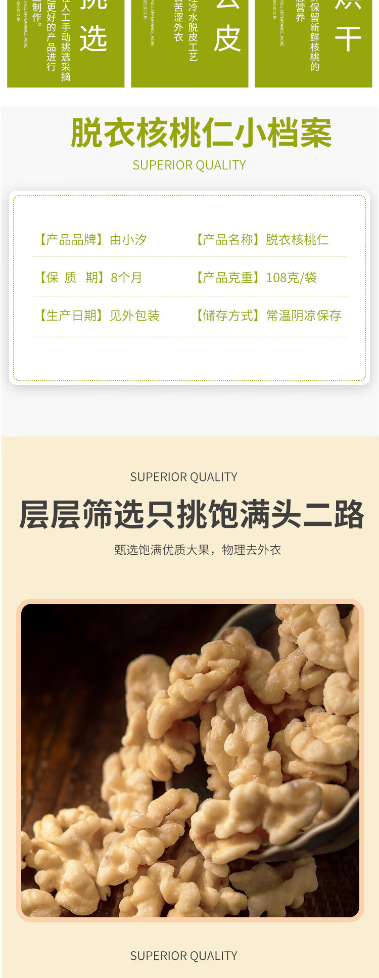 商品名称:【精选】由小汐 零食装脱衣核桃仁108g*2